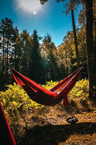 Vill du bara relaxa så har vi hängmattor, brädspel och ett bibliotek fullt med böcker och lego. Och gamla cyklar som nästan kan vägen ner till Laxasands badplats är klar.